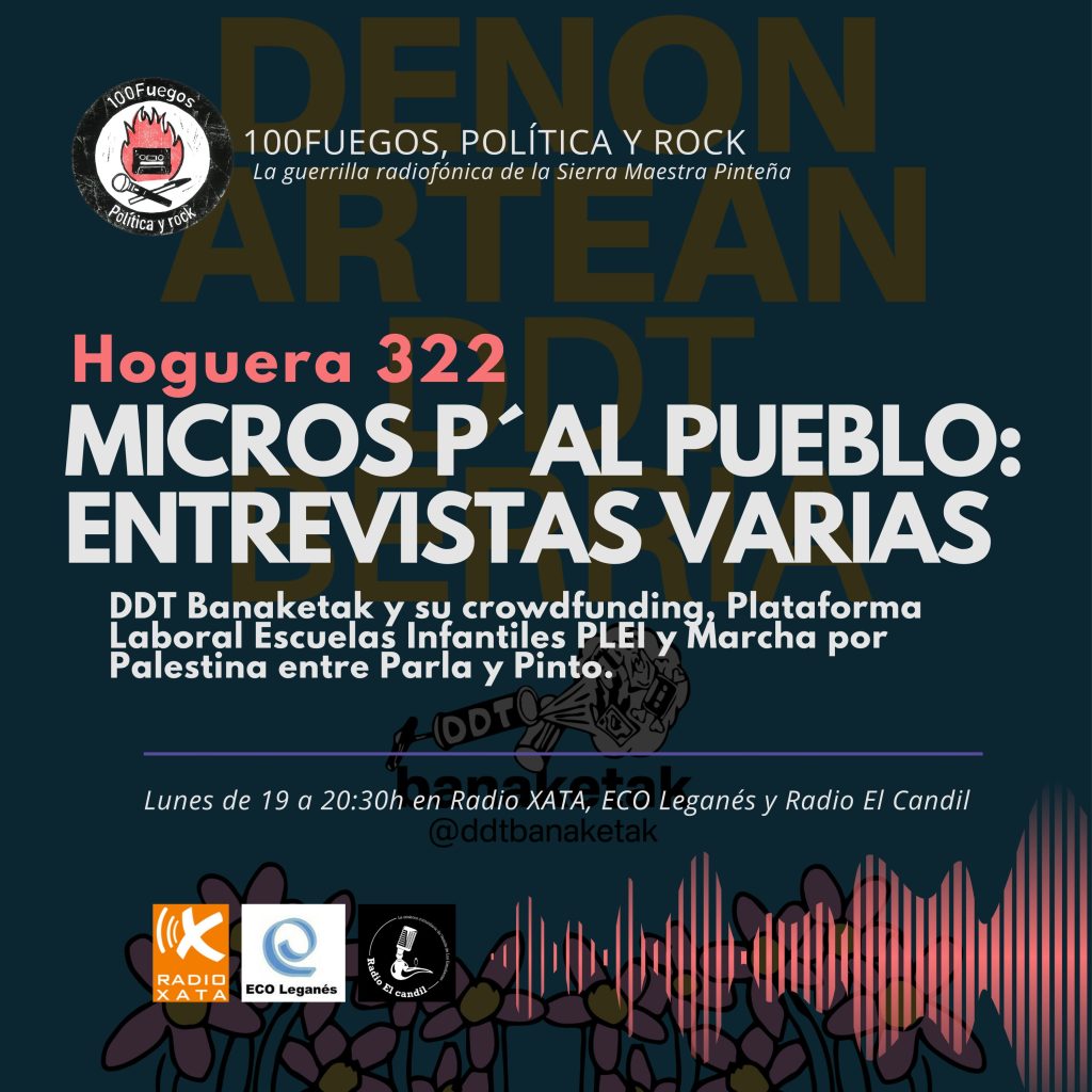 100Fuegos x 322: micros p´al pueblo. Entrevistas con DDT, PLEI y Pinto con Palestina