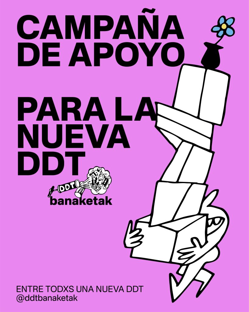 Y desde Bilbao nos atendieron desde el colectivo contracultural DDT Banaketak, en pleno crowdfunding para la compra de su nuevo local. Una inmejorable oportunidad para conocer mejor el modo de trabajar de este referente en la contracultura y el “hazlo tú mismx”.